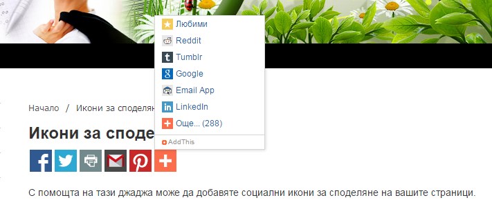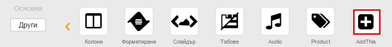 Предлагаме допълнителна джаджа към Сайт Конструктор с която може да поставите под своето съдържание лента с икони за споделяне.